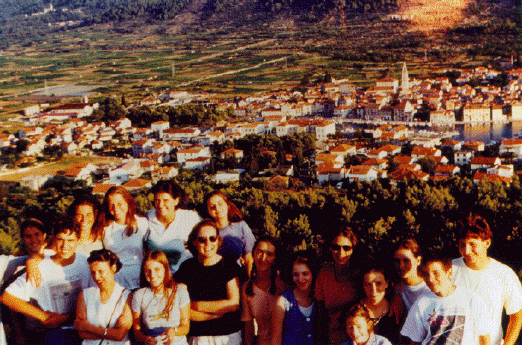 Ucenici I. gimnazije iz Splita i Klasicne gimnazije iz Zagreba na prethistorijskoj gradini Glavica iznad Staroga Grada i na arheoloskim istrazivanjima bedema antickog Farosa - Unesco ljetni kamp 1995.
