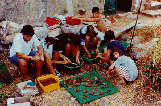 Ucenici I. gimnazije iz Splita i Klasicne gimnazije iz Zagreba sudjeluju na arheoloskom terenu u obradi keramickog materijala iz antickog Farosa