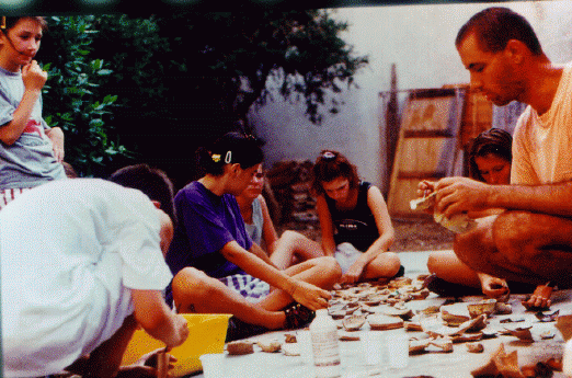 Ucenici I. gimnazije iz Splita i Klasicne gimnazije iz Zagreba sudjeluju na arheoloskom terenu u obradi keramickog materijala iz antickog Farosa.