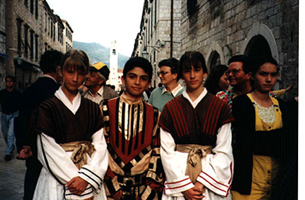 Lea and Tinkara from Slovenia and Stepanian from Armenia during the shopwindows exhibition in the Old City