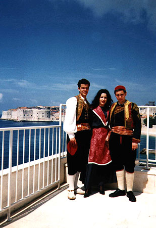 Tea Kvarantan, Viseslav Franic and Ivan Vidjen in national costumes from the region of Dubrovnik and Split in Croatia