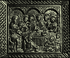 Detail from doorframe of main entrance to cathedral: The Last Supper, Andrija Buvina, 1214.